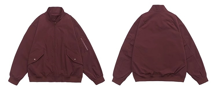 DG STUDIOS DG780 バーガンディ工装スタンドカラージャケット|早春のトレンドカジュアルスタイル